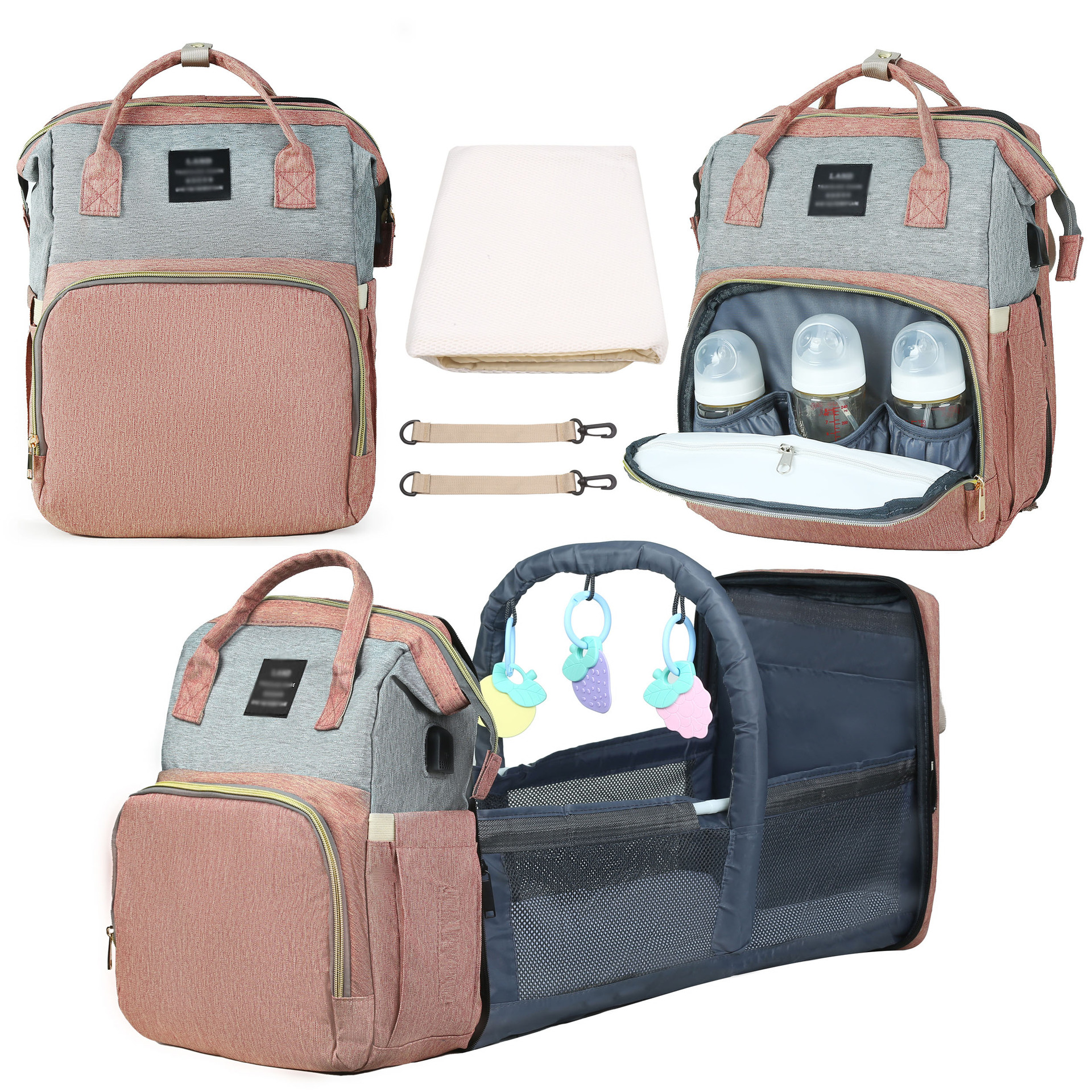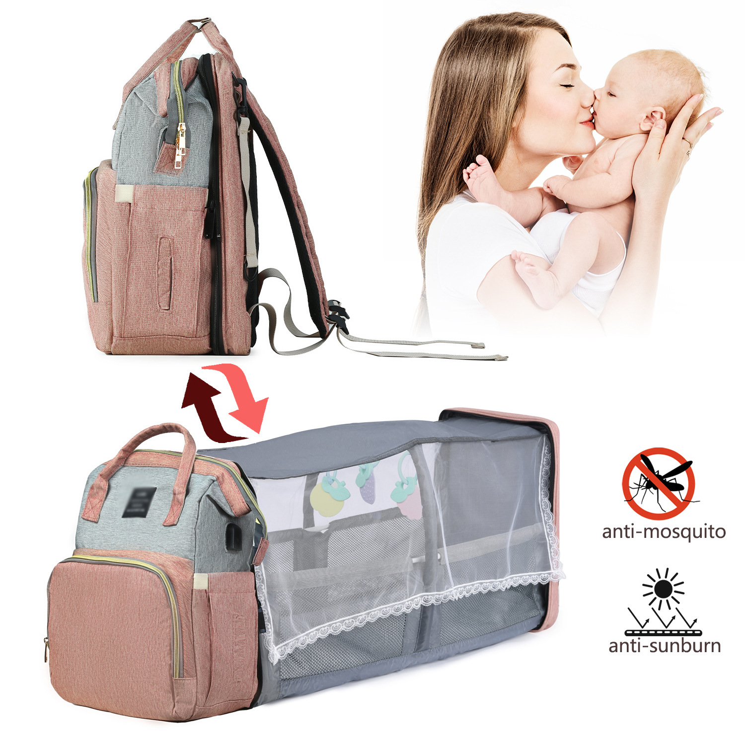 Tragbares Kinderbett, multifunktionaler Rucksack, Hängetasche für Kinderwagen