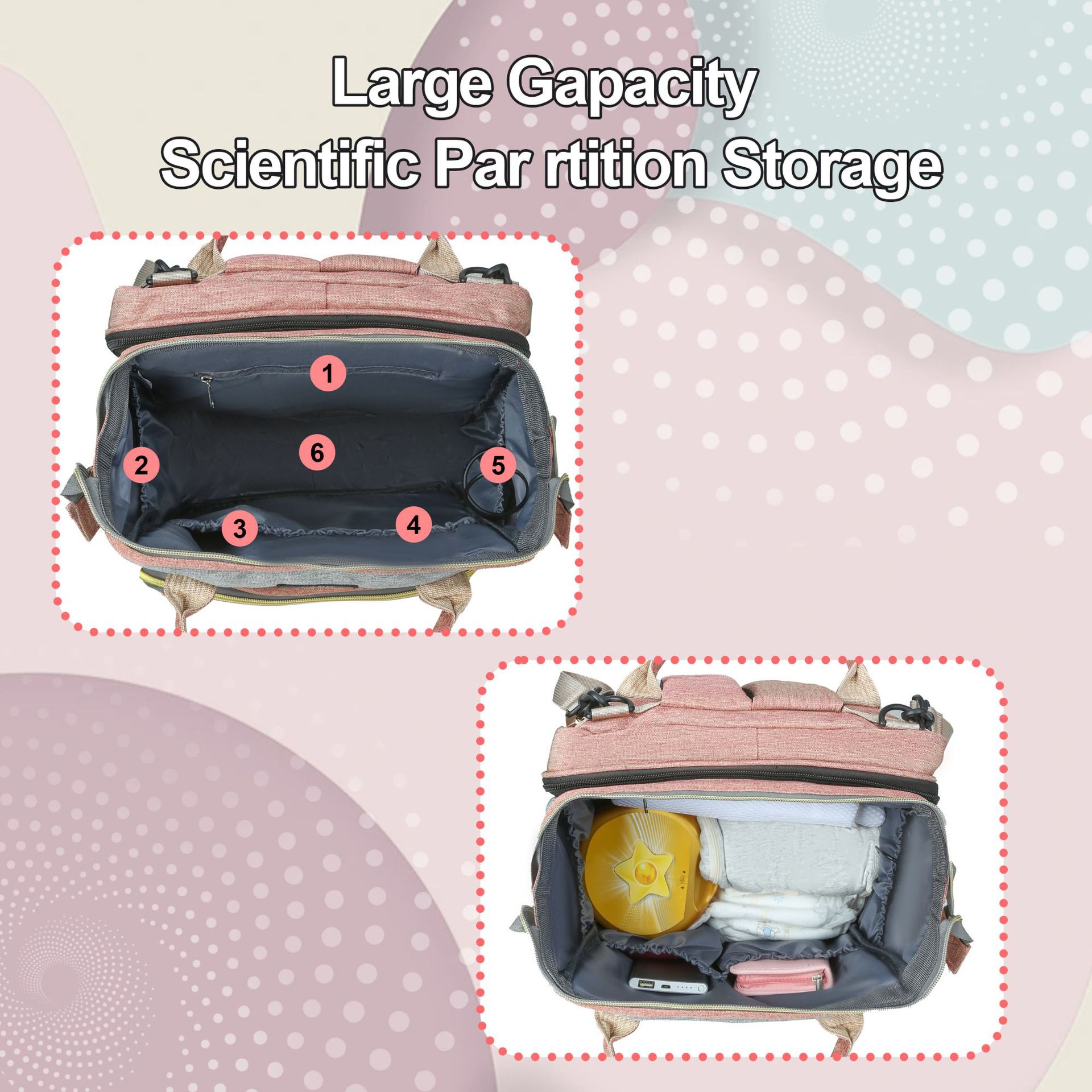 Geräumig, organisiert und mit cleveren Fächern ausgestattet, hält er alles Wichtige griffbereit – von Windeln bis Fläschchen. Einfach am Kinderwagen befestigt oder bequem als Rucksack getragen.
